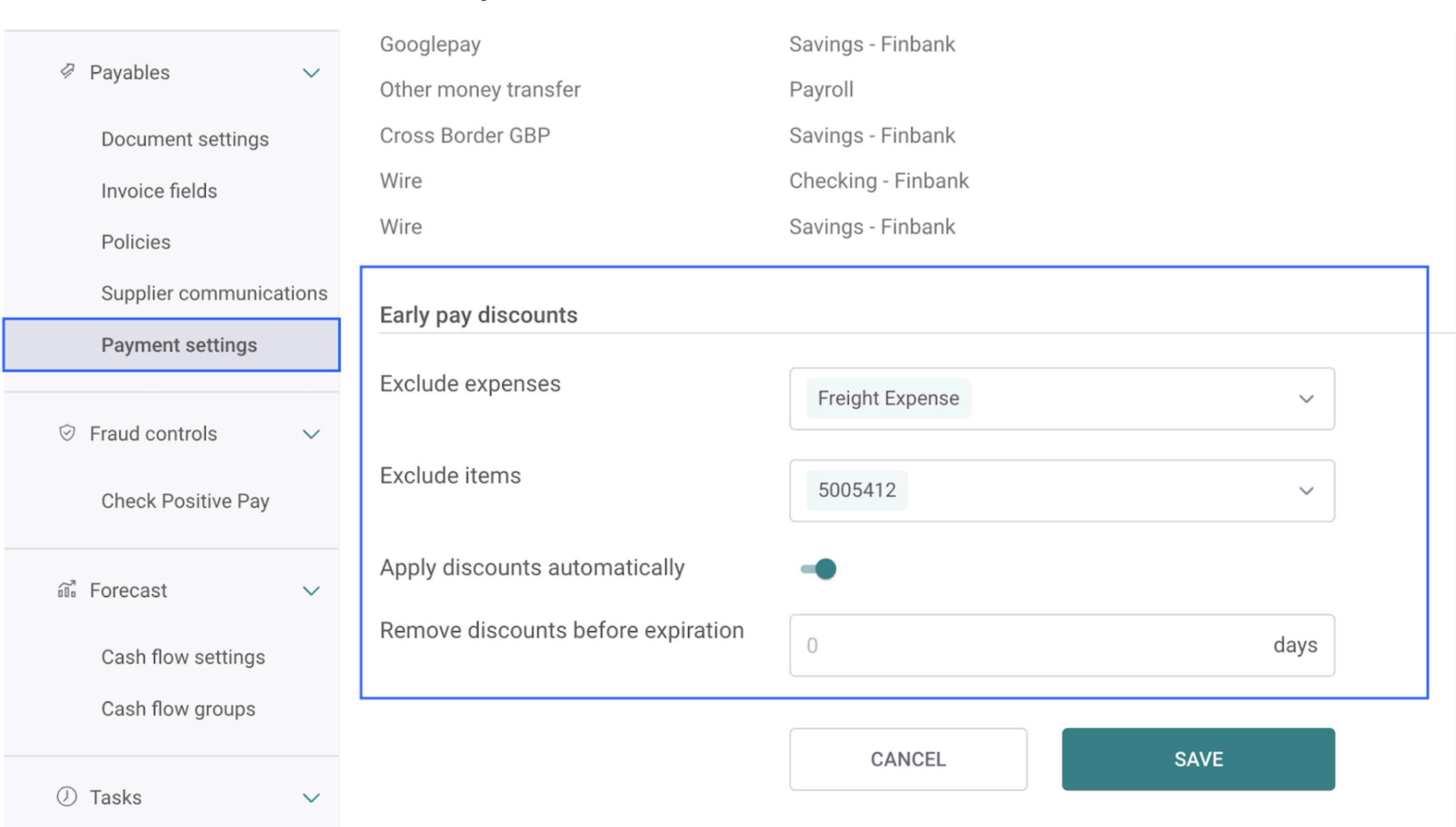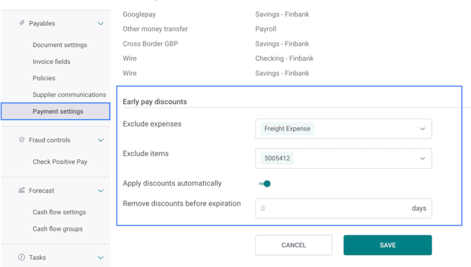 Users can automate the discount application workflow by enabling “Apply Discounts Automatically” in the Payment Settings. This setting can also be configured at the supplier level for more granular control.