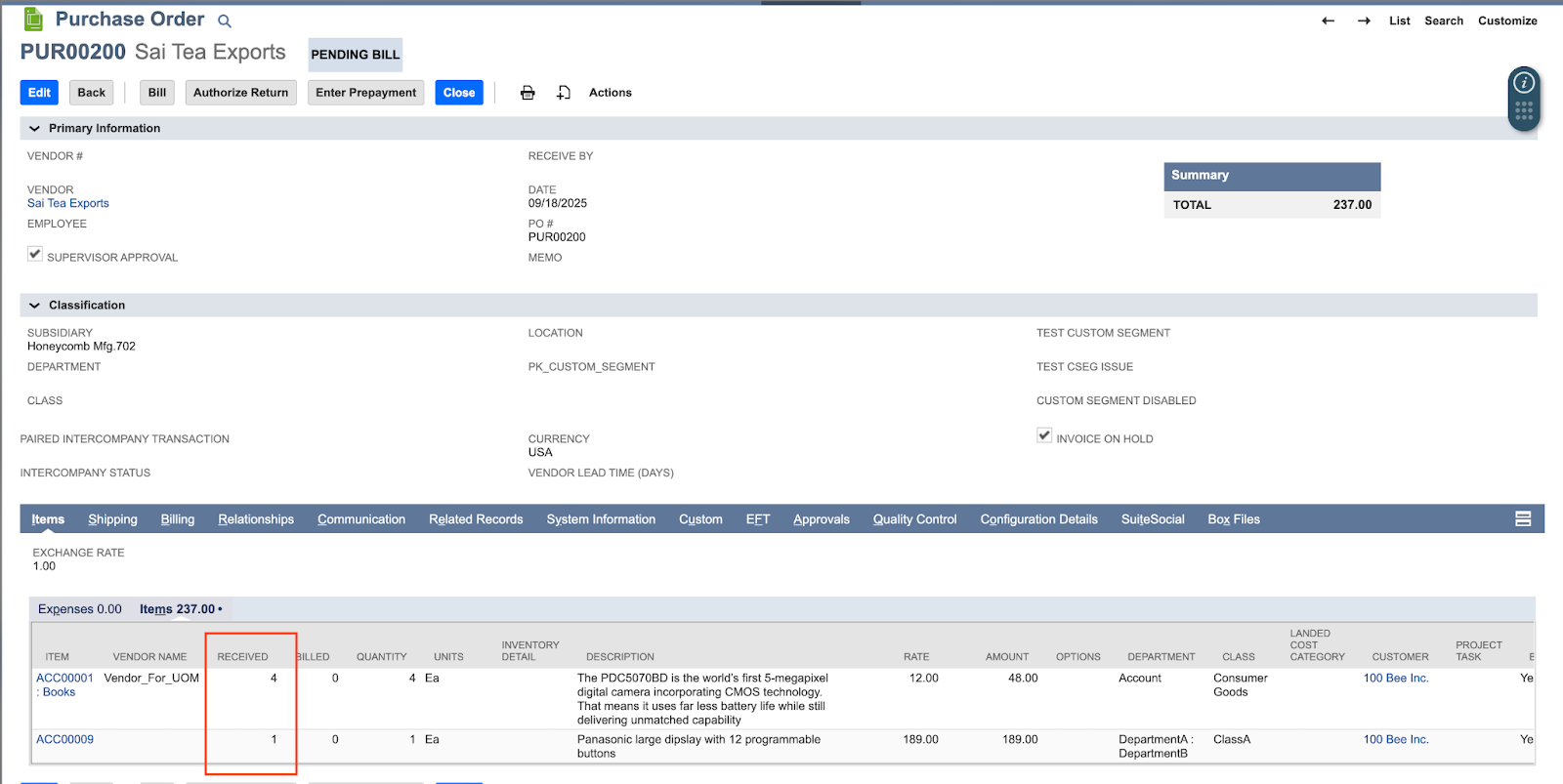 Centralized PO workflow in Netsuite