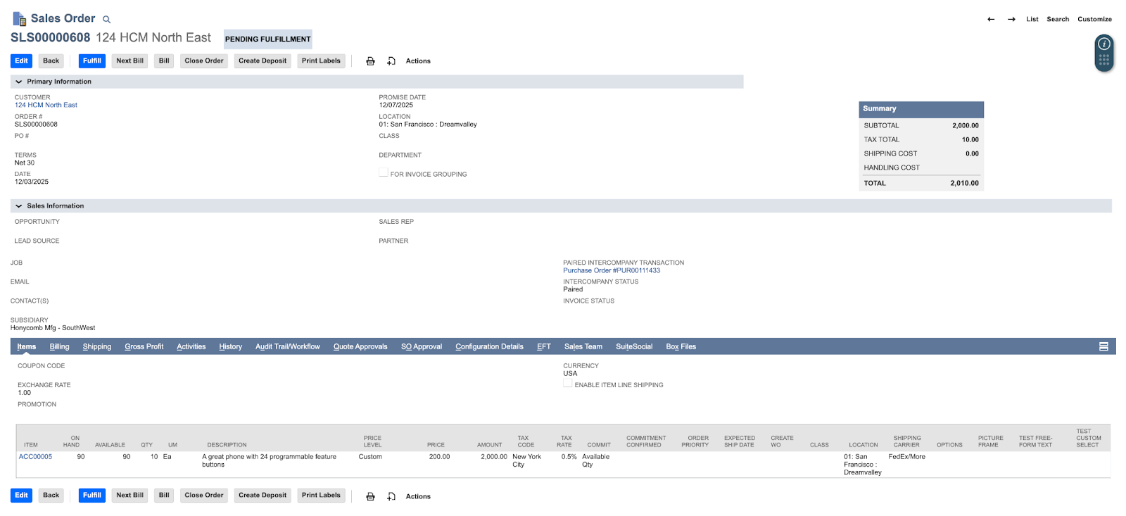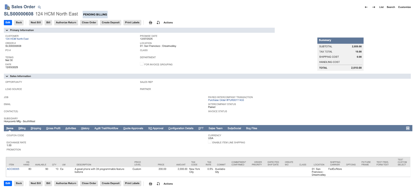 - Paired Intercompany Transaction: Sales Order #SLS00000608
