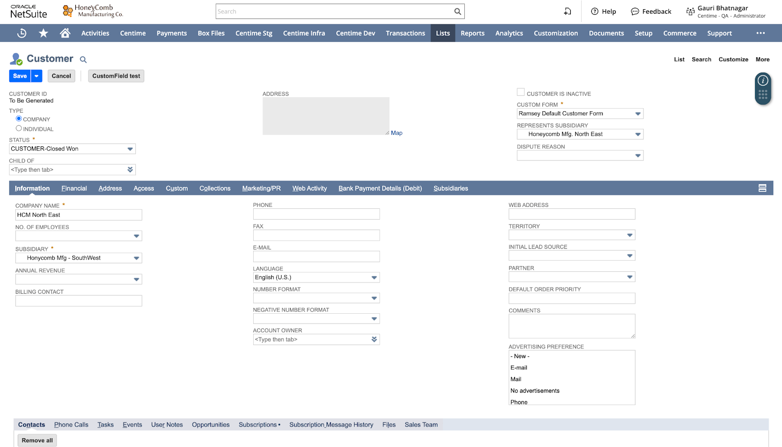 SET UP of data in Netsuite