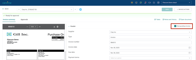 - You will see a checkbox labeled “Non-Posting Invoice” in the invoice summary.