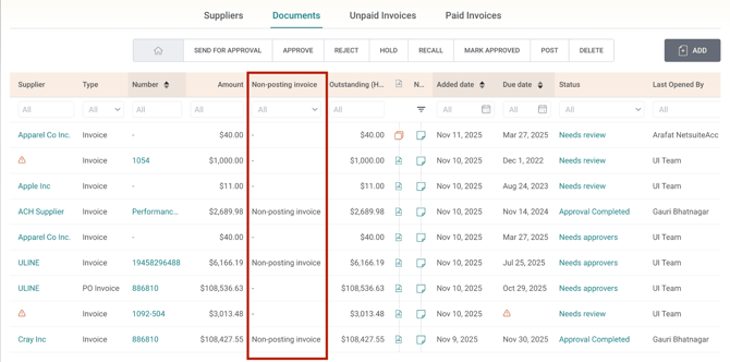 Users can choose to suppress posting for invoices uploaded in Centime. These invoices will remain within Centime permanently and will not be posted to the ER.